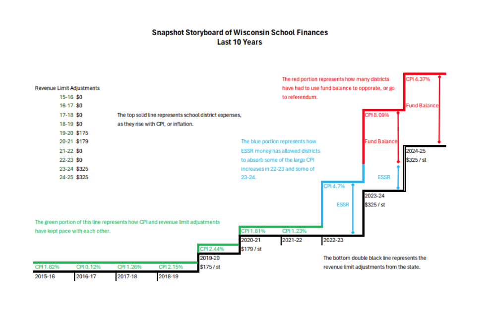 The school district has experienced significant inflationary increases to its operating expenses over the past two years which were primarily supported by federal grants. Those grants are no longer available to the school district beginning with the 2024-25 budget. State revenue limit laws require the school district to ask voters for permission to generate additional revenue through referendum to exceed the revenue limit. The school district's last operational referendum approved by voters was held February 18, 2014, which allowed the school district to exceed the revenue limit by $350,000 each year. However, the current year's revenue limit, which includes the 2014 Referendum allows the district to receive only $250,000 more revenue than it allowed eight years ago. The 2024 Operational Referendum would provide funds to pay operating costs to maintain instructional programs, staffing, technology and facilities management.